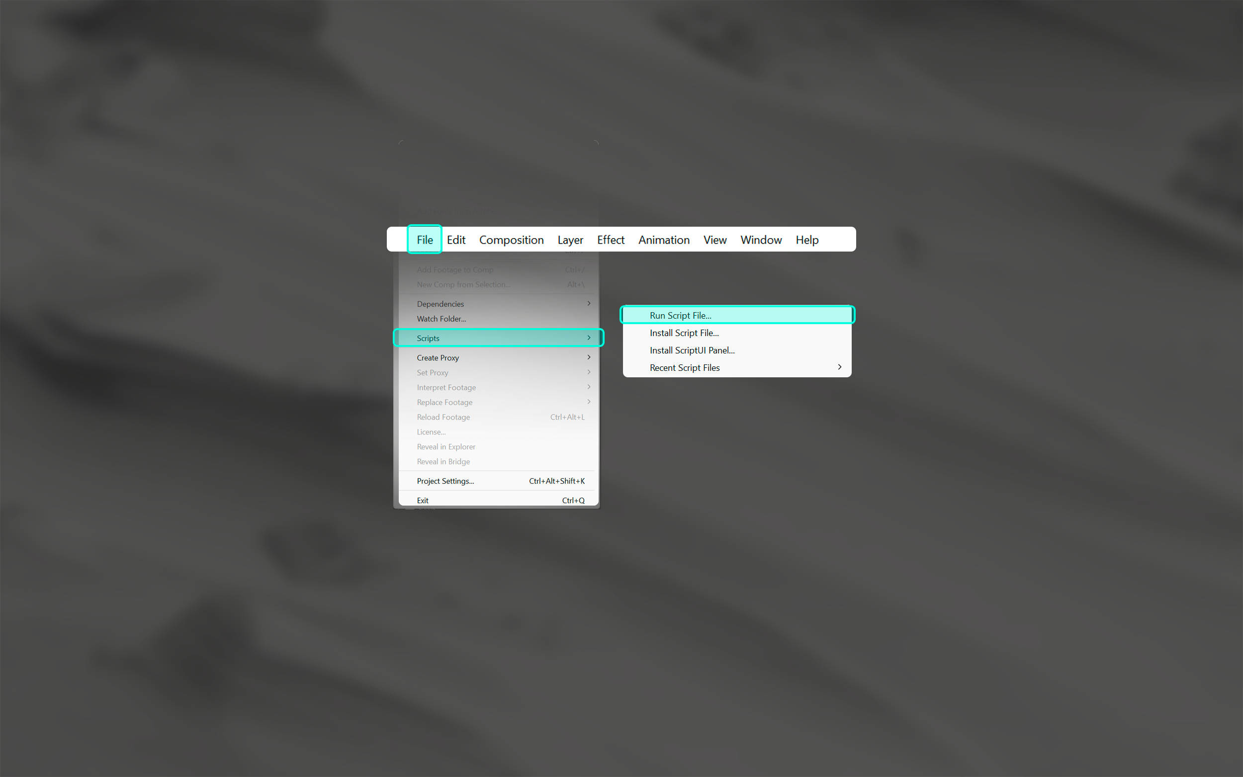 Para usar scripts no After Effects, você pode escrevê-los diretamente no After Effects Script Editor, chamado ExtendScript, ou em um editor de texto externo como o VSCode, e depois executar no After Effects.